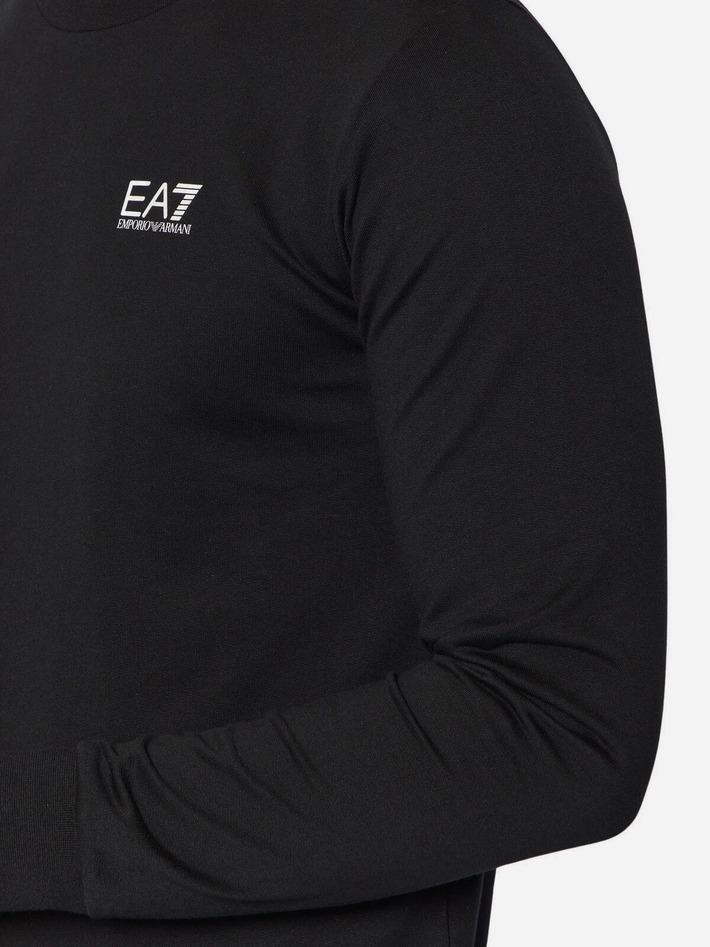Na przodzie i tyle znajduje się charakterystyczna gumowa aplikacja z logo EA7 Emporio Armani, a na lewej piersi – eleganckie logo podkreślające ekskluzywny charakter bluzy.