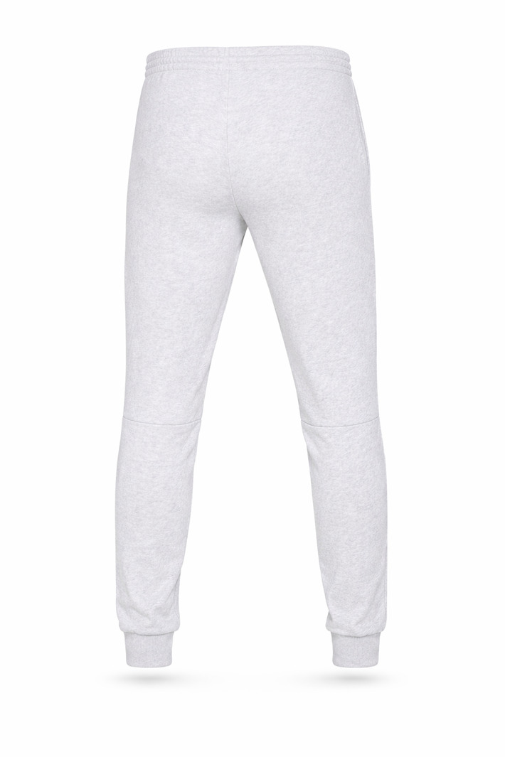 Męskie spodnie dresowe Lacoste XH9624 w uniwersalnym szarym kolorze to idealne połączenie sportowego stylu i codziennej wygody. Model Slim Fit wykonany z miękkiej bawełnianej dzianiny z dodatkiem poliestru zapewnia komfort oraz trwałość podczas codziennego użytkowania. Miękkie, pluszowe wnętrze gwarantuje przyjemne ciepło, a elastyczny pas z regulacją na sznurek pozwala na idealne dopasowanie do sylwetki. Dwie boczne kieszenie zwiększają funkcjonalność, natomiast ściągacze przy nogawkach i charakterystyczne logo Lacoste pod lewą kieszenią nadają spodniom sportowy i markowy charakter.